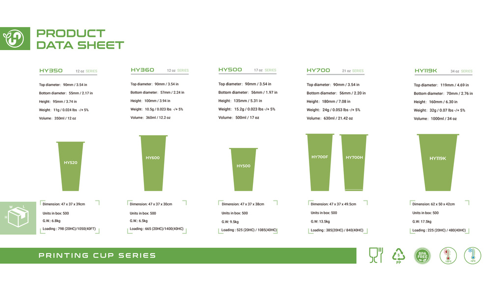 We are proud to present an extensive range of specifications for our high-quality PP injection-molded cups, designed to meet various customer needs and preferences. Our cups are crafted from the finest polypropylene material, ensuring durability and safety for all your beverage requirements. We offer a variety of product capacities that range from 12 ounces to a generous 34 ounces, allowing you to choose the perfect size for your specific application, whether it be for events, food service, or everyday use. Additionally, we understand that some projects may require unique specifications, and we are happy to accommodate custom designs. To ensure that your investment is protected, we have a policy in place where the mold fees for custom specifications will be fully refunded once your production reaches a milestone of 5 million pieces. This way, you can focus on your business without worrying about upfront costs.